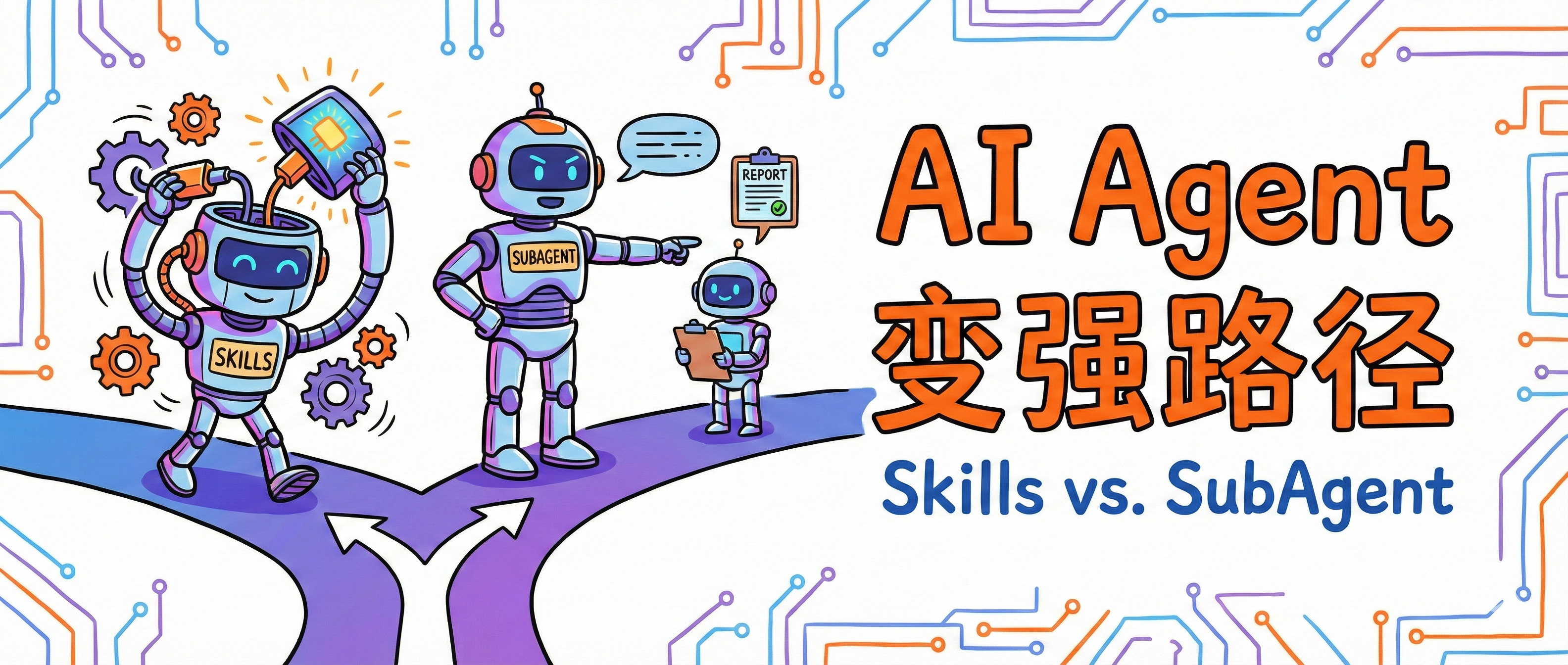作者详细阐述了提升 AI Agent 能力的两种不同模式:Skills 和 SubAgent。Skills 模式通过将能力直接植入主 Agent 的上下文,使其能够自主执行任务,适用于任务不复杂或需要全程掌控的场景,但易造成上下文污染。SubAgent 模式则将复杂子任务委托给独立的子代理,主 Agent 仅负责分派和验收,保持自身上下文清洁,适用于重度、耗时的子任务。文章强调了上下文管理对 Agent 性能的重要性,并提供了三种进阶玩法,包括“先展开再压缩”、“文件系统中转”和“利用 Rewind 功能”,以优化上下文使用。最后指出 Agent 架构设计与传统软件架构有共通之处,强调合理选择和组合这两种模式对提升 Agent 能力的决定性作用。